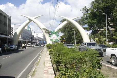L’arrivée au centre ville de Mombasa se fait immanquablement sur la Moi Avenue dont l’originalité est cette double arche de défenses d’éléphant géantes croisées, souvenir de l’époque de la couronne britannique. C’est précisément là que les vendeurs ambulants, quelques rares Masaïs et d’autres, attendent les cars de touristes pour leur vendre des statuettes et autres objets artisanaux en bois. C’est là aussi où j’ai fait l’affaire de ma vie en marchandant un couple de statuettes de bois représentant une femme masaï accompagnée par son mari guerrier. Plus tard, toutes les boutiques, au plus bas de leurs prix en offraient au moins le double. Ceci tenterait à prouver que les harceleurs sont parfois ceux qui peuvent vous faire faire de bonnes affaires.