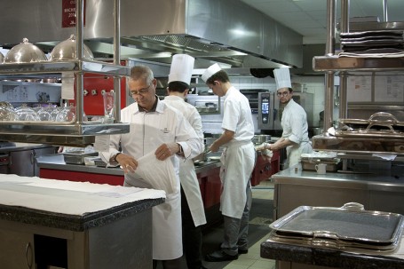 L’astreinte : Première étoile Michelin en 1971, deuxième étoile en 1976 et la troisième en 1986 : voilà un défi de taille qui ne semble pas décourager Jean-Michel Lorain qui déclare en parlant des grands cuisiniers en général : « On se met la pression nous-mêmes. On est des passionnés. Les chefs qui font ce métier sont hyper-perfectionnistes. Il ne faut pas chercher d’où vient la pression quand on fait ce métier. La pression, on se la mets tout seul qu’il y ait les étoiles ou pas. Notre but est de satisfaire le client. Nous sommes des marchands de bonheur. Nous sommes plus des artisans que des artistes. Si nous avons aussi une part imaginaire et artistique quand nos décorons nos plats, la base de notre métier reste néanmoins du travail manuel. Je m’inspire beaucoup de ce que j’ai appris lors de mon passage chez Freddy Girardet en choisissant une cuisine très proche du produit de saison et très identifiable. Dans son assiette, le client reconnaît facilement le goût, la texture et la couleur de ce qu’il mange. J’aime que ma cuisine soit gourmande et généreuse et qu’elle ait les pieds sur terre. »