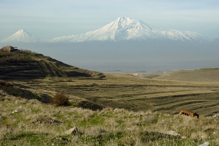 Erevan se prosterne chaque jour devant ce monstre de 5’137 mètres de hauteur qu’est le mont Ararat, et son petit frère, le « petit Ararat », .Au grand dam des Arméniens qui le revendiquent, il se trouve en territoire turc, mais sa majesté peut se voir depuis de nombreux endroits en Arménie. Malheureusement, rares sont les moments où il soit totalement découvert, les nuages ayant la fâcheuse habitude de cacher son sommet. Pourtant, à potron-minet on peut avoir le grand plaisir de le voir rosir au soleil levant, entièrement dégagé. La légende voulant que l’arche de Noé y ait échoué est contestée. Il y aurait un autre mont Ararat au pied de l’Euphrate qui, lui, serait le bon.