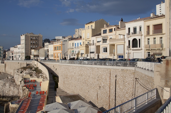 Dès que la journée de travail s’achève, les habitants des quartiers du Roucas blanc, de Bonneveine ou de Pointe Rouge n’ont pas beaucoup de parcours à faire pour se retrouver dans une atmosphère de vacances. Et hop, on enfile son costume de bain et on va sans traîner se rafraîchir dans la mer depuis les quelques criques qui forment le début des calanques. Chacune de ces criques se conforme à l’image des petits ports de pêche communs à la Méditerranée avec les bistrots et les restaurants qui servent la traditionnelle bouillabaisse. L’ambiance y est bon enfant et le temps passe en oubliant les soucis devant un traditionnel pastis. La corniche est un lieu de promenade, de pêche à la ligne, de course à pieds ou en rollers. Au centre de la corniche marseillaise où se trouve la plage artificielle du Prado qui a été aménagée avec les remblais du métro dans les années 80 pour encourager les Marseillais à se baigner dans la Méditerranée (avant cette époque, seulement 13% d’entre eux profitaient des bains de mer proche de chez eux, les autres préférant les plages de Cassis ou de Bandol.