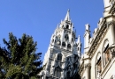 Le «Nouvel hôtel de ville», reconstruit au 19e siècle pour remplacer l’ancien transformé en musée, est l’un des rares bâtiments à y avoir échappé. Cet établissement n’a pas du tout le style bavarois, ni même allemand, mais plutôt nord européen, disons un peu flamand, avec des arcades et des voutes néo-gothiques. Parmi les multiples curiosités de la façade, on retiendra le carillon (Glockenspiel) qui, sur deux étages, tourne au son d’un concert de cloches.